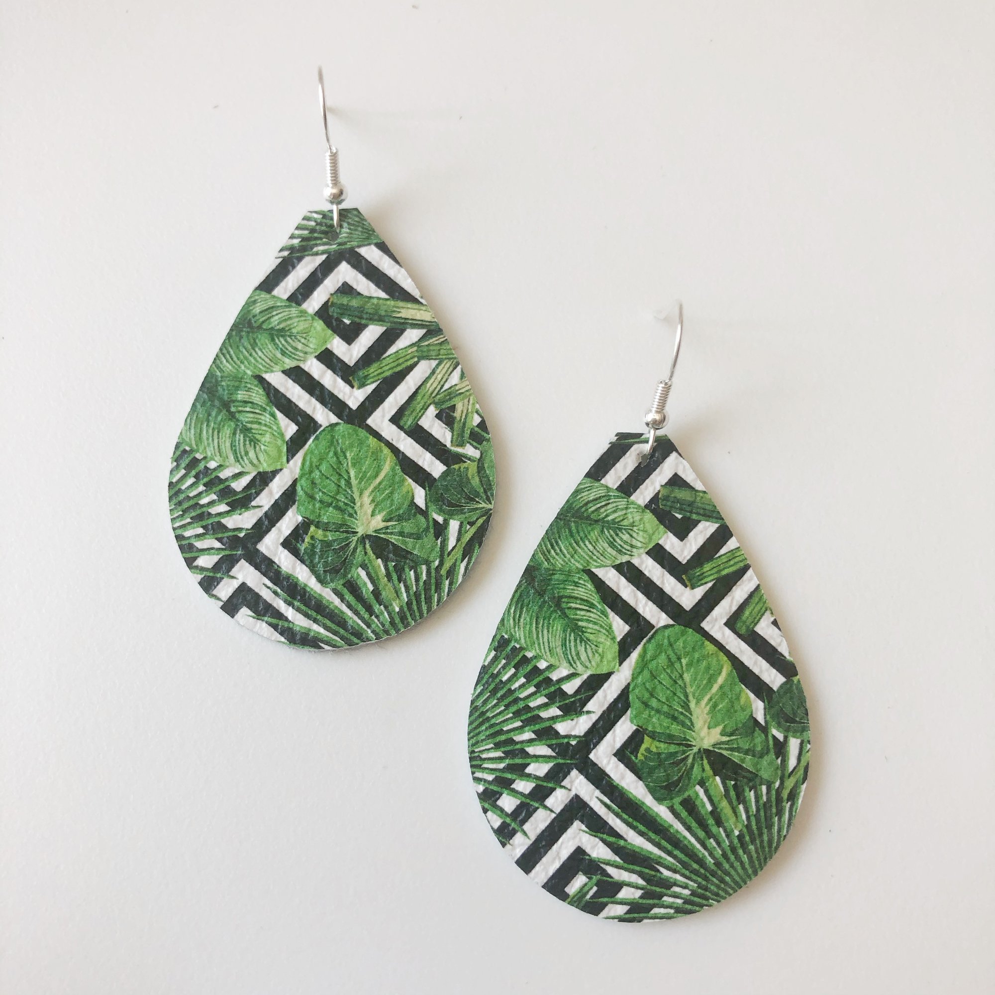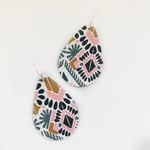 Genuine leather teardrop earrings- Shimmer Stripe OR Spanish Deco